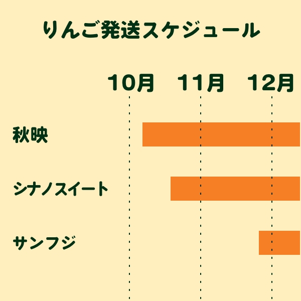 シナノスイートは **10月中旬以降に発送予定** です。 天候や収穫状況により、発送開始時期が前後する場合がございます。あらかじめご了承ください。